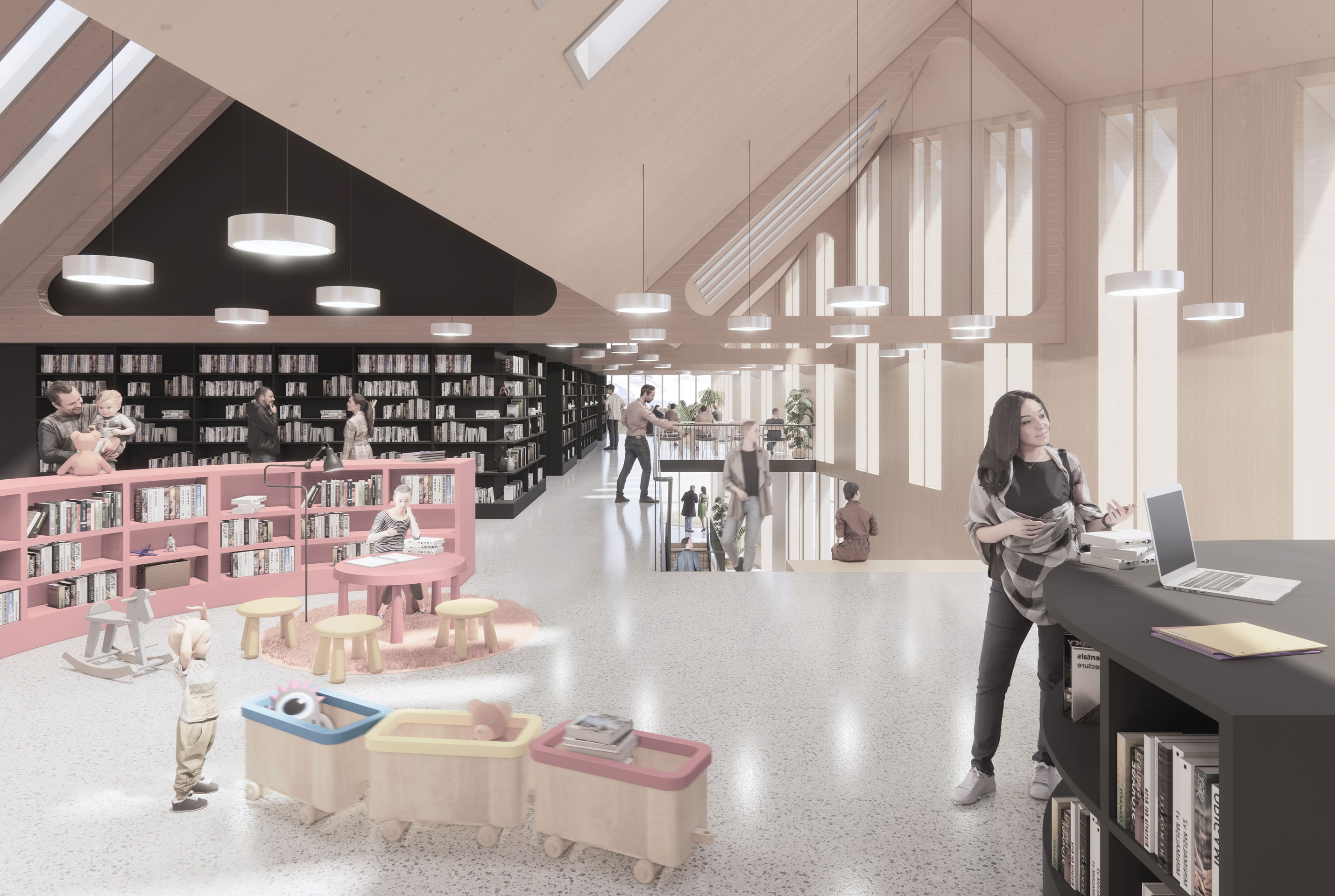 The new building of the cultural center and library becomes the main cultural institution of the municipality. The volume of the new building is designed and positioned to re-establish the relationship between the built fabric and the outdoor areas.